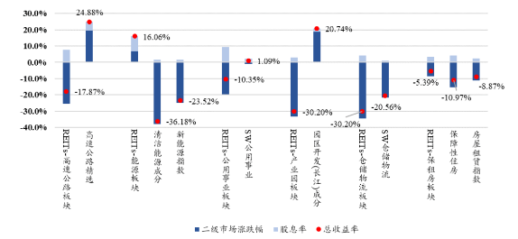 中国各板块REITs指数与行业指数市场表现对比(2023年)