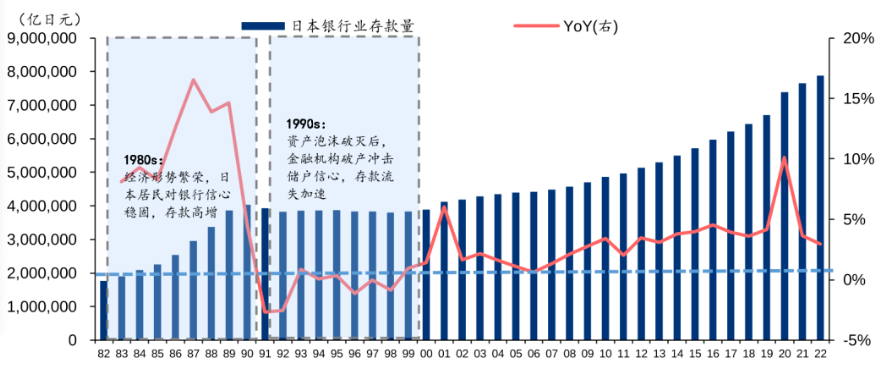 日本银行业存款变动(1982年-2022年)