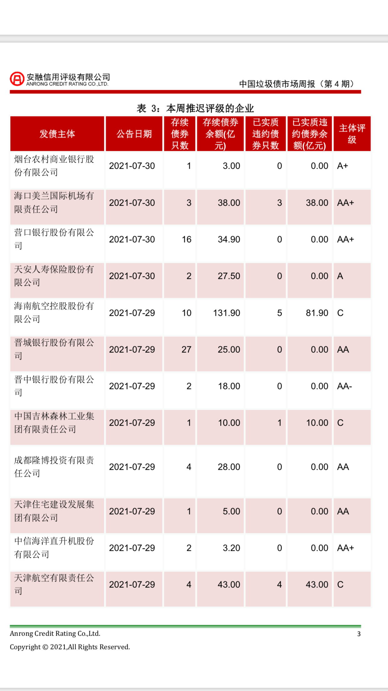 安融评级-垃圾债市场周报2021年第3期(数据截至2021.