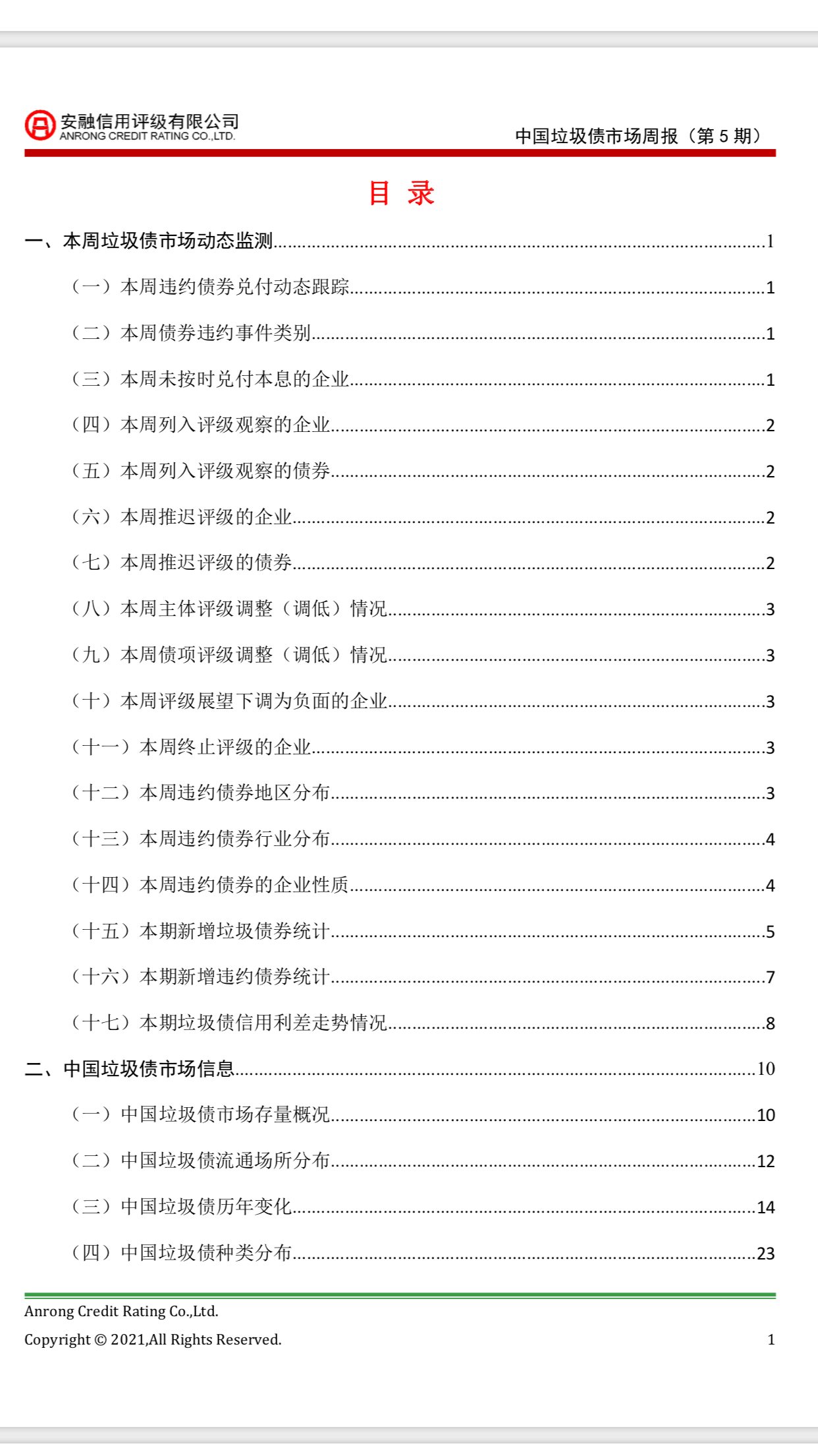 安融评级-垃圾债市场周报2021年第5期(2021.8.2-2021.8.8)