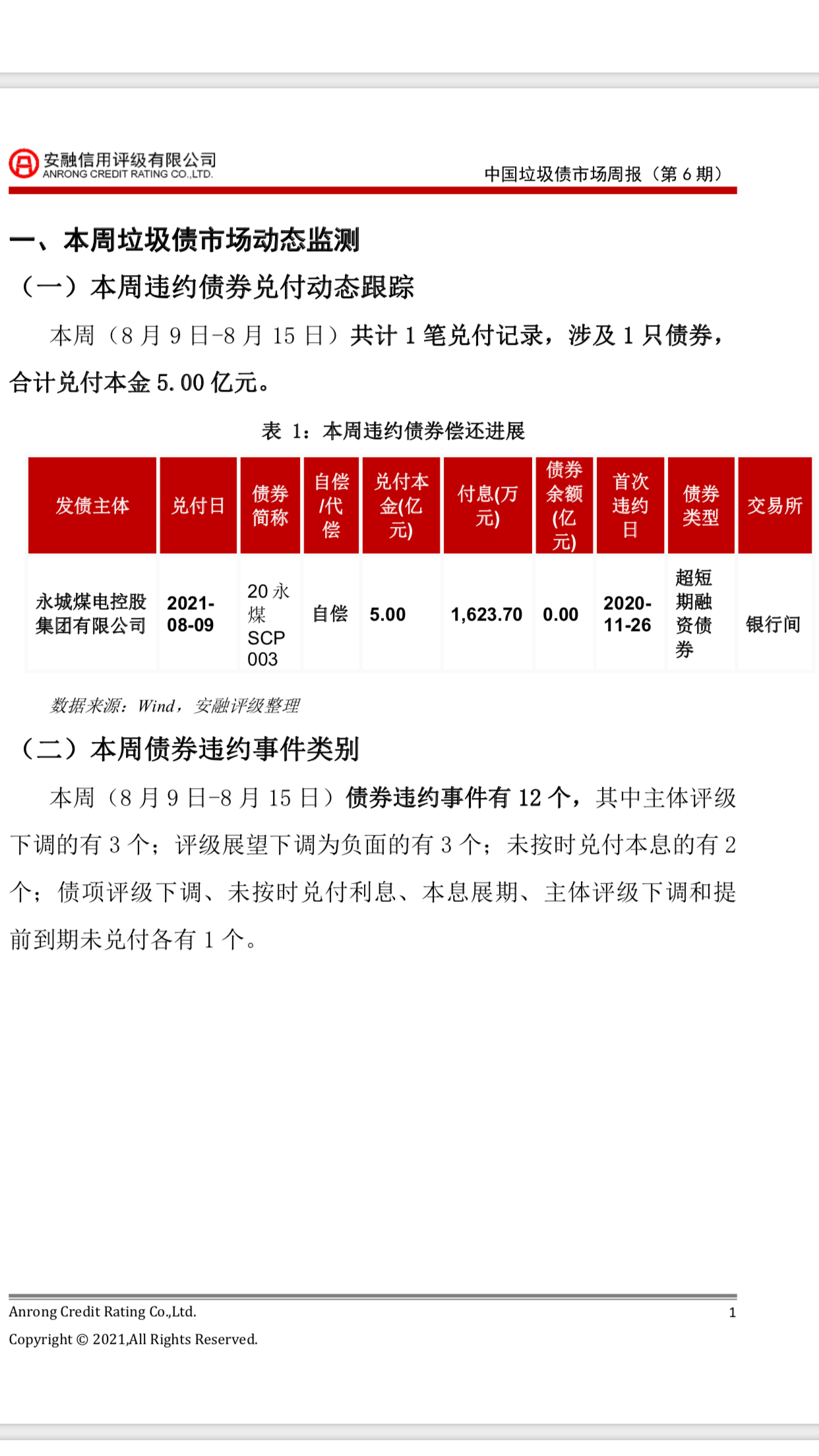 安融评级-垃圾债市场周报2021年第6期(2021.8.9-2021.8.15)