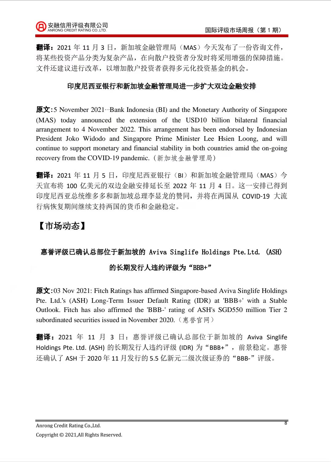 安融评级:国际评级市场周报2021年第1期(2021.11.01-11.07)