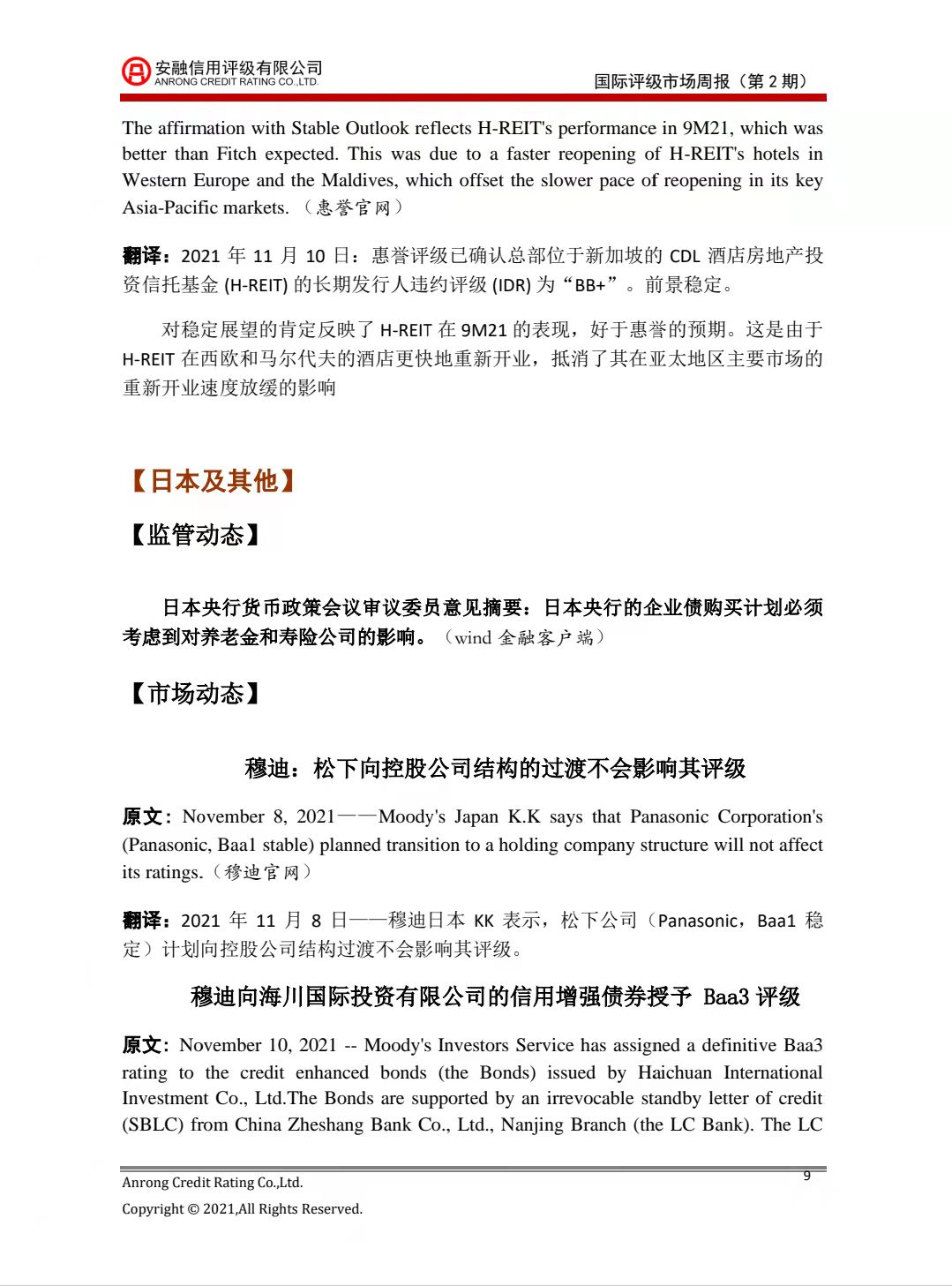 安融评级:国际评级市场周报2021年第2期(2021.11.08-11.14)
