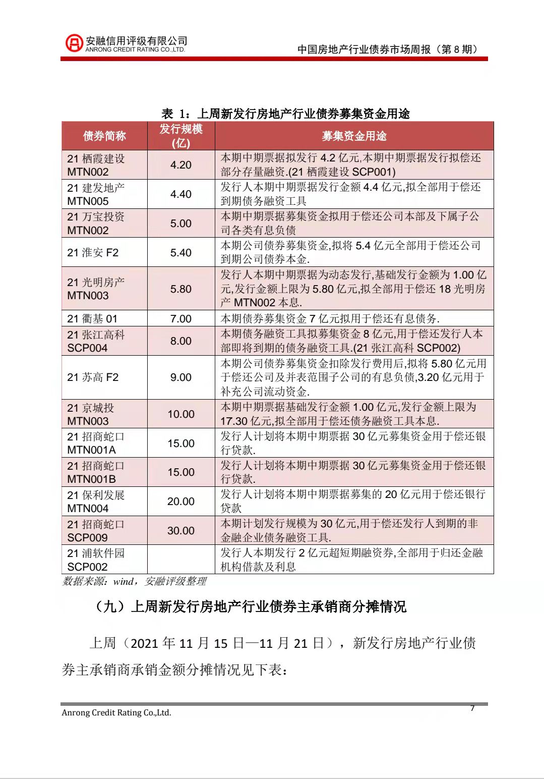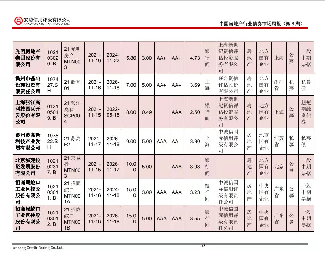 安融评级:中国房地产行业债券市场周报2021年第8期(2021.11.15-11.21)